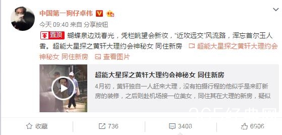 今天早间,卓伟又一次置顶爆料大文,黄轩大理约会神秘女,同住新房共春宵。