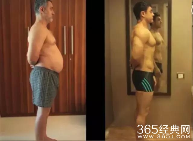 一部电影的时间,阿米尔汗让自己从左图瘦到了右图。