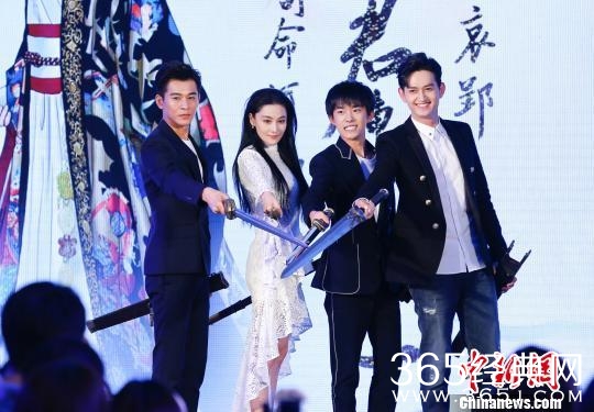 电视剧《思美人》开播仪式在北京举行。图为马可(右一)、乔振宇(左一)、张馨予(左二)、易烊千玺(右二)等主创出席活动。 杜洋 摄