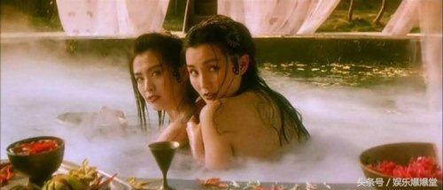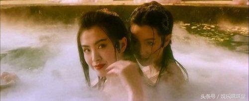 而张曼玉与王祖贤合作的《青蛇》也是“百合之情”的代表作,两人搭戏的细节处尽显暧昧,开篇登场方式就是在房顶上亲来亲去,而最经典的“女欢女爱”的场景,莫过于半裸的两人搂在一起的沐浴,简直迷死众生不偿命。