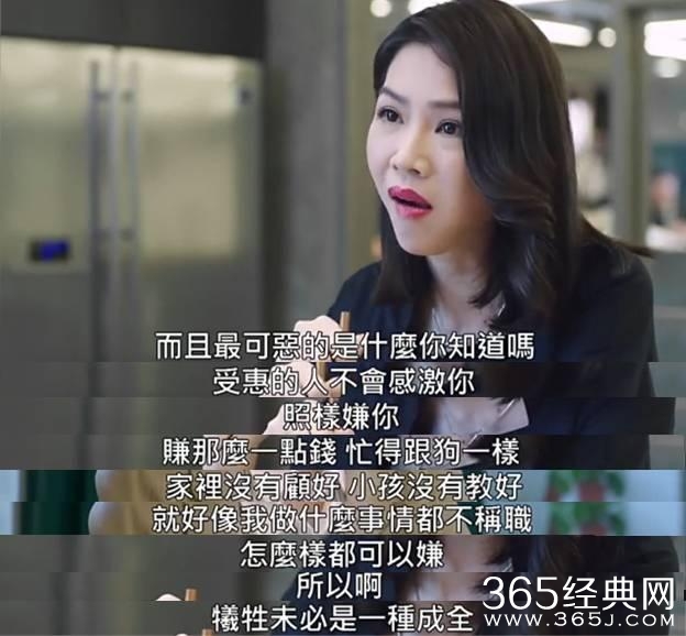 “而且最可恶的是什么你知道么,受惠的人不会感激你,照样嫌你,赚那么一点钱忙得像狗一样,家里没照顾好,小孩没有教好,就好像我什么事情都不称职,怎么样都可以赚,所以啊,牺牲未必是一种成全”