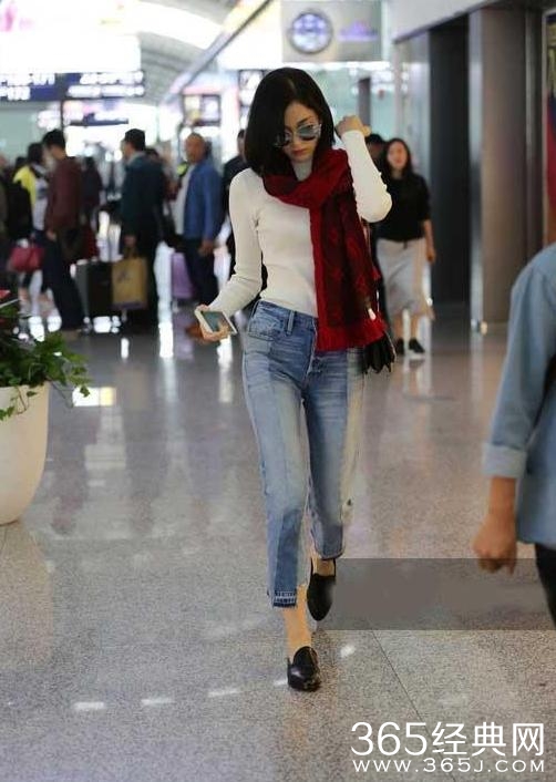 先来看看新疆的长腿妹子娜扎,每次在机场基本都是穿牛仔系列的衣服,可这走路姿势,好像很过瘾的样子哦!