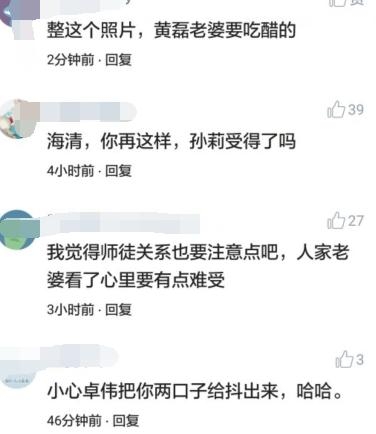 至于黄磊的老婆孙丽是不是介意,我们就不要多操心了。两口子一向恩爱,是娱乐圈的模范夫妻。现在都有三胎了。相信,对于黄磊,孙丽是一百个放心。海清能有黄磊这样的老师是幸运,黄磊有海清这样的学生是骄傲,别用自己世俗的眼光看人家好不?