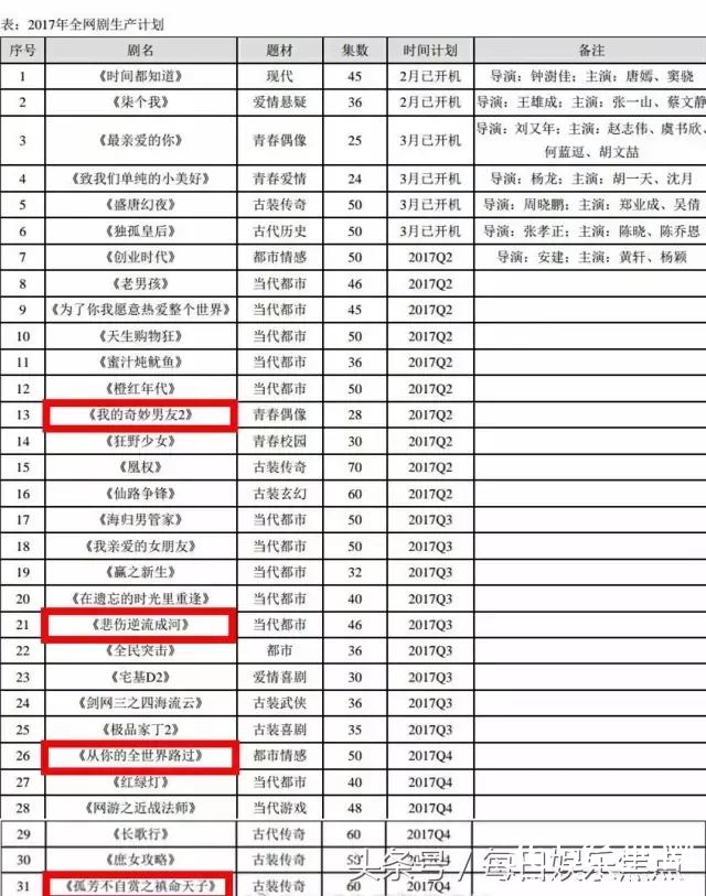 今天剧姐看到2017年全网剧生产计划表,吓得赶紧拿出来跟剧宝们分享一下。