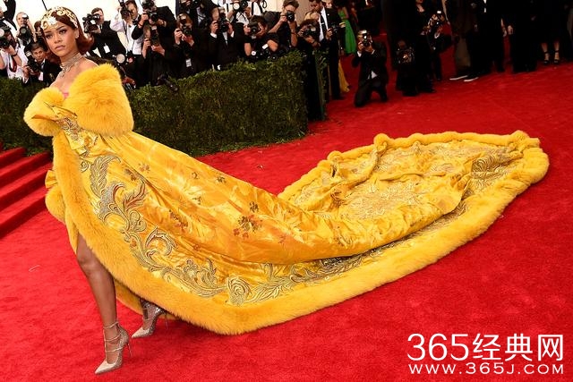 2015年,Met Gala的主题是“镜花水月”,章子怡、巩俐、周迅、赵薇、倪妮、汤唯、范冰冰等女星也纷纷受邀。但那一年最著名的还是美国天后蕾哈娜的摊煎饼礼服,她也因此得名“山东天后”。