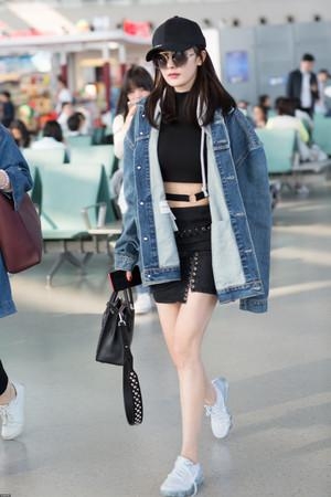 杨幂27日现身南京机场,戴着黑色鸭舌帽、大墨镜,短版上衣露出纤腰,外搭oversize的牛仔外套,短裙排扣开衩到大腿根部,直接露出一大截嫩白长腿,整体看起来性感又不失帅气,不过最吸睛的还是她平滑的「婴儿肚子」,微肉却不肥胖,好身材让粉丝相当羡慕。