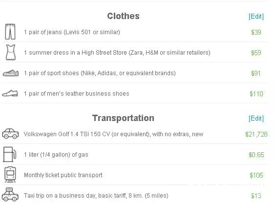 交通类,公共交通出行费用为105美元/月