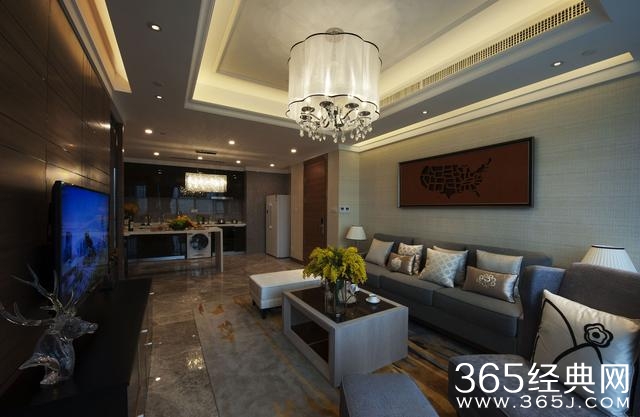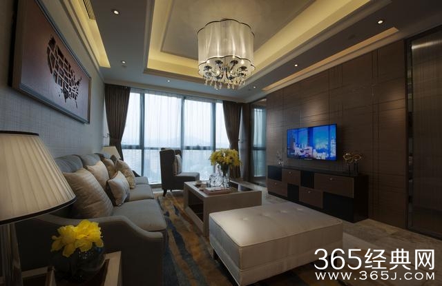 灯具和电视墙材质选择是亮点,沙发也显得非常大气,整个空间搭配让人感到非常舒服。