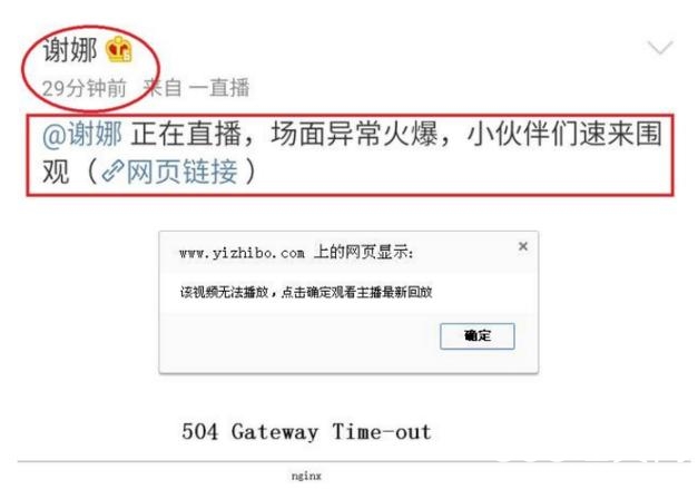 狂删微博引来漫天流言蜚语的谢娜,今晚终于现身了,其微博显示“正在直播,场面异常火爆,小伙伴”,可是当点击网页链接后,却出现了这样一幕!“该视频无法播放,点击确定观看主播最新回放”。