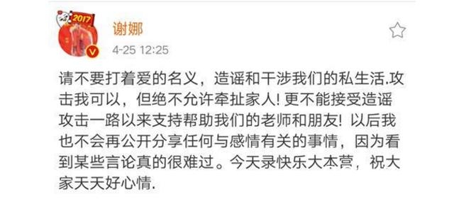 “婚变”传闻发酵一天后,谢娜首次发声,娜姐这次是真的怒了,说不允许造谣干涉他们的私生活,不允许牵扯家人,以后也不会公开谈感情,谢娜这番话狠狠打脸了卓伟和造谣者~~