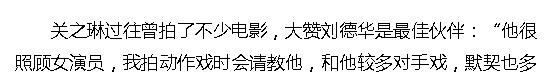 而关之琳则表示,虽然彼此喜欢,但绝对不是爱,因为合作太多次,两人很难再擦出火花,在她心里,刘德华更像是亲人“他像哥哥,我们之间大概欠缺一点缘分吧。”