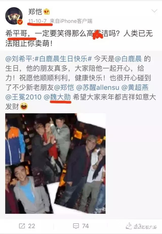 当然了不止小魏,刘希平跟很多圈儿内明星关系都很好,比如早年没红的恺恺吖
