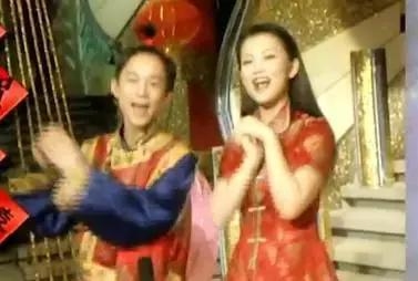 第一次主持的两人还是穿着黑西装和花衬衫,那时候很流行的吧~