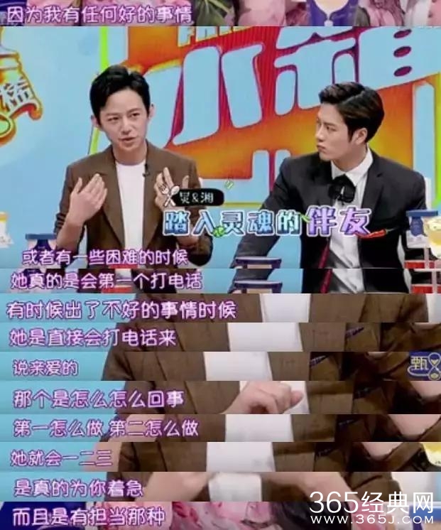 何炅还说:“不光在节目里,后来在生活中也一直追随湘湘,我人生很多重要的决定背后都有湘湘。”是友情让他们长大的啊~