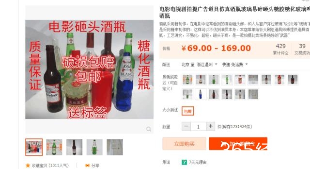 但影视剧中的酒瓶道具,并不是现实生活中的玻璃酒瓶,而是道具师用糖特制的,道具师会提前一天将白砂糖加热融化,灌到模具里,如果是有颜色的酒瓶,还会加入一些色素。这种瓶子承重低,一般装水都不超过瓶子的三分之一,很脆,但不伤人。