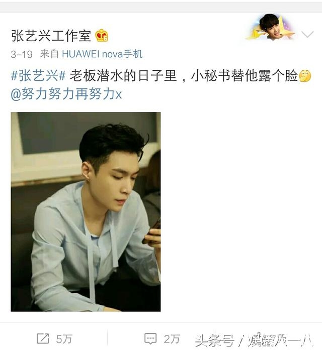 相对来说,换了团队的张艺兴,工作室微博就较为官方了,比如日常替老板爆照
