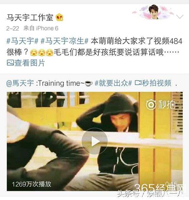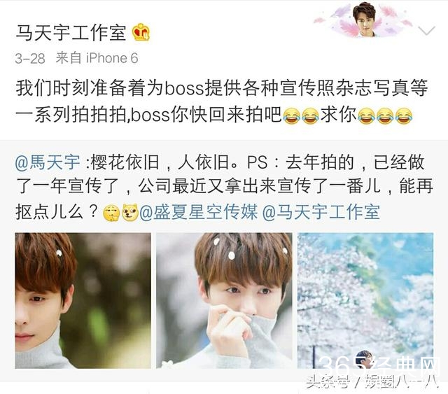 马天宇工作室微博画风就透着一股蠢萌的画风,皮下自称“萌萌”,日常发博简直是迷妹角度,打理微博的肯定是个萌妹子。