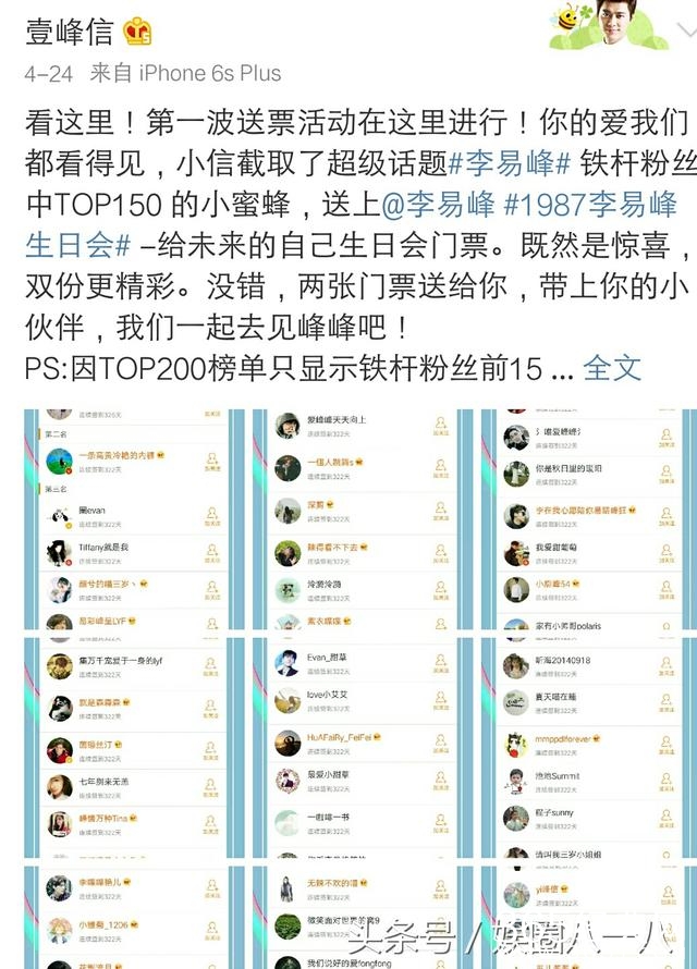李易峰官方的很贴心,对粉丝超级好,比如李易峰生日将近,官方可是直接给超级话题前150的粉丝免费送票。