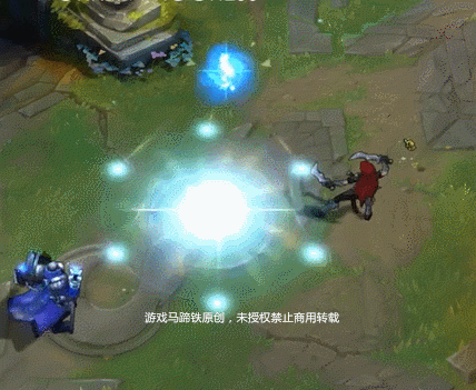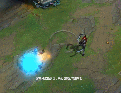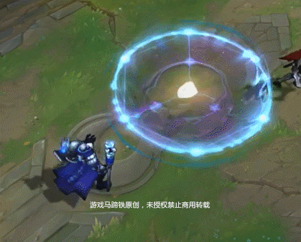 有没有看到地面被高能的立场扭曲到出现不一样的纹理呢?就跟拉克丝的大招射完地上留下的效果差不多。这个技能近看比较酷炫,效果炸裂。