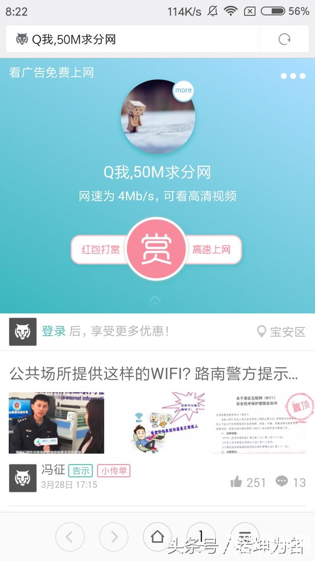 改变三:偷偷出了一个免费上网,一个关注公众号上网的功能,这个还好,路由器拥有者暂时可以关掉这个功能!但是,但是最低限速不可调了,对于不能关闭打赏功能的路由器,本来还可以限速,现在行不通了;