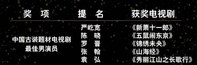 5.古装题材电视剧最佳女演员:古力娜扎《轩辕剑云之凡》、杨紫《青云志》、关晓彤《九州天空城》、甘婷婷《新萧十一郎》、张歆艺《解忧公主》
