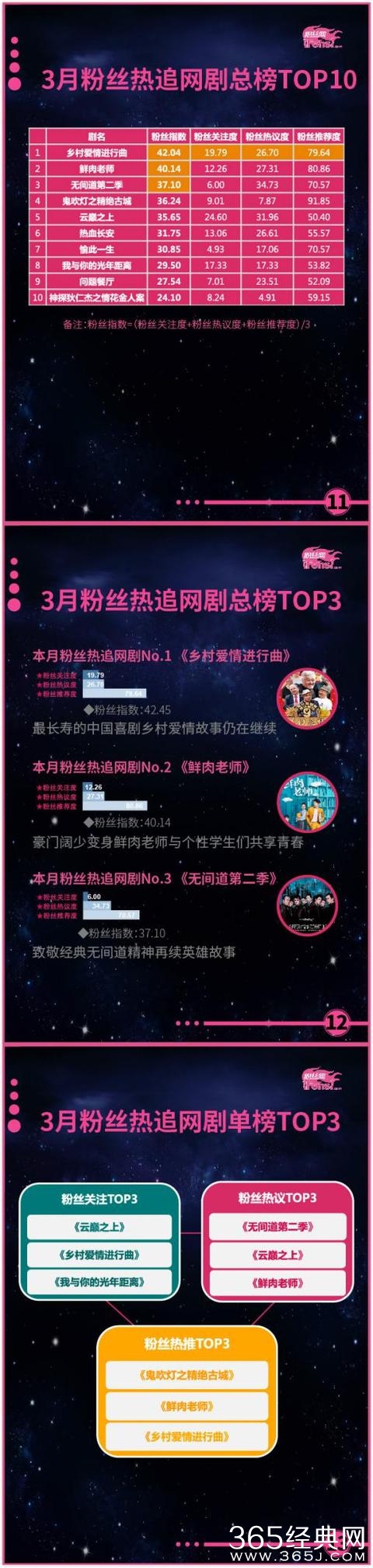 粉丝热追电视剧模块的成绩持续增长,上月在《三生三世十里桃花》的带领下,粉丝热追电视剧作品的成绩表现出明显进步,更是创造了近半年来电视剧作品的最高成绩,而本月表现也毫不逊色。