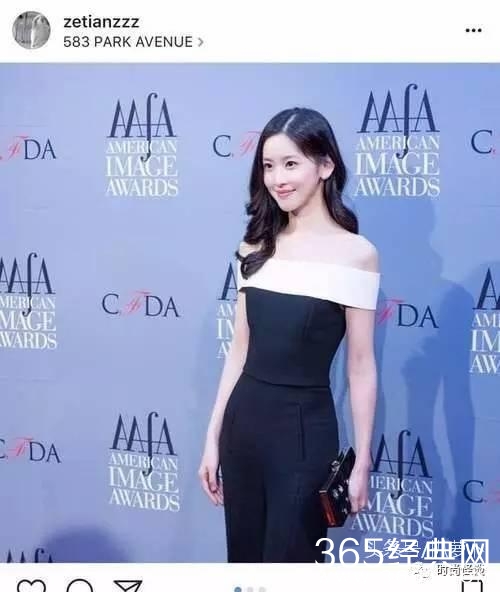 参加美国AAFA活动,简约黑白色配色,一字领露肩设计,将视线焦点转移到她最好看的部分:修长的颈脖和青春的脸。