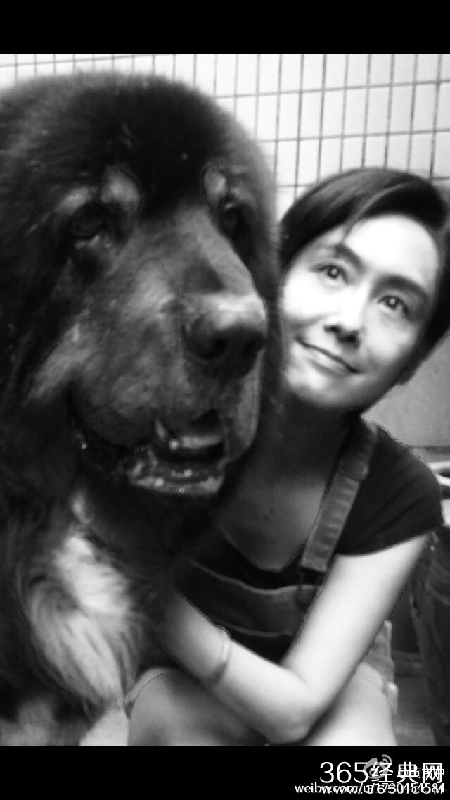 尤其是这只体重72公斤的“宝帝”,身形跟一头熊一样,朱茵趴在它身底下显得如此渺小。