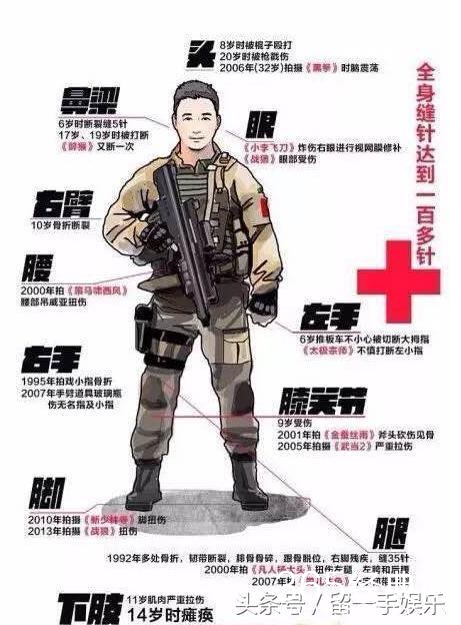 吴京就更不用说了,简直是“受伤小王子”,全身也是没有多少健康的地方了。