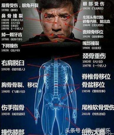当然拍戏经常受伤的还有成龙,那些电影里惊险的动作,全都是真身上阵完成的,大哥说自己全身几乎都伤了个遍。