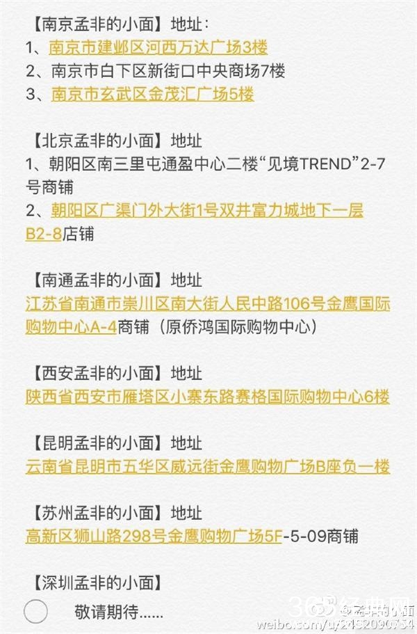 短短两年多时间,孟非的面馆就在全国各地扩张到了10家门店: