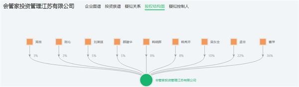 除此之外,孟非和刘葆琪还一起出现在会管家投资管理江苏有限公司的股东之列,孟非认缴出资220万元占22%股权,刘葆琪出资50万元占5%股权。该公司对外投资了欧汇(上海)文化发展股份有限公司和会管家企业服务江苏股份有限公司,孟非在里面皆出任高管。