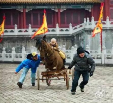 在《山河恋》里,有个小孩骑马在皇宫里疯跑的戏。小孩肯定驾驭不了马的,带他跑的其实是工作人员▼