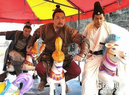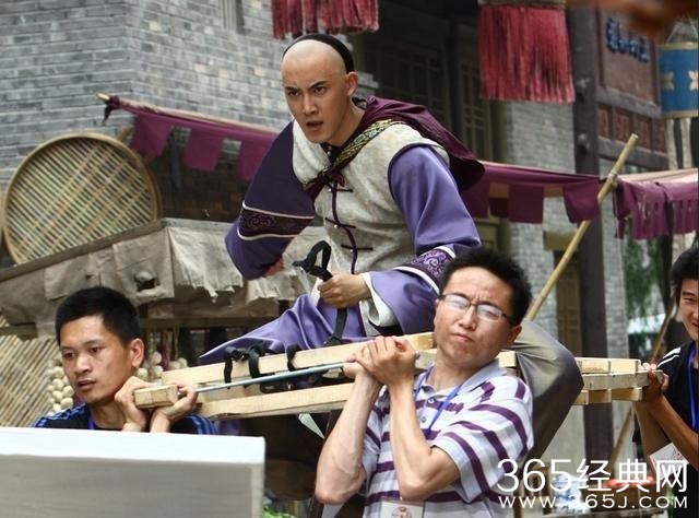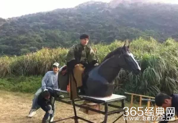 为了效果逼真点,就得有几个人抬着架子制造晃动的效果。主角在“马”上潇洒自如,下面这几位工作人员却很苦逼。