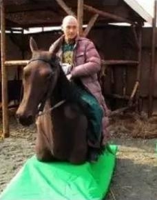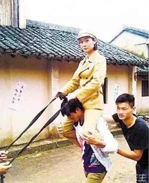 这是蒋林静拍《从将军到士兵》时,因为剧组找不来道具,为了图方便,就改骑人了。