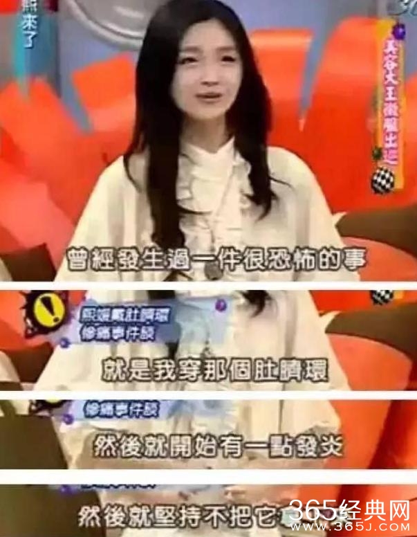 她不但打过脐环还打过舌环,当年因为打脐环导致肚脐发炎,她硬是不愿意摘掉,把发炎的脓肿直接用手挤出来然后拿剪刀给剪掉!