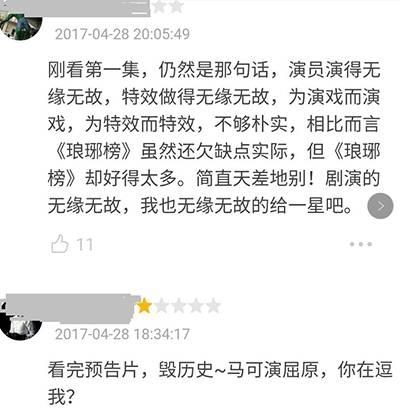 刚开播就被吐槽,特效差,服装花花绿绿完全没有战国时期的古朴厚重感,并且腐气重,让人无力接受!
