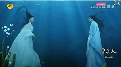 接下来便是空中,陆地还是水里,男女主梦中的邂逅,浪漫唯美,当然还有无处不在“秀”的飘逸长发!让人忍不住想问,用的是不是《三生三世》夜华姑父的同款洗发露,哦不对应该是杀姐姐同款。