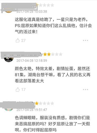 而剧里的服化道也是一言难尽,看看屈原的这身大花衣服……总之网友认为这大概是屈原被黑的最惨的一次!甚至被怀疑是打着屈原幌子包装的俗套故事,让人很是失望。