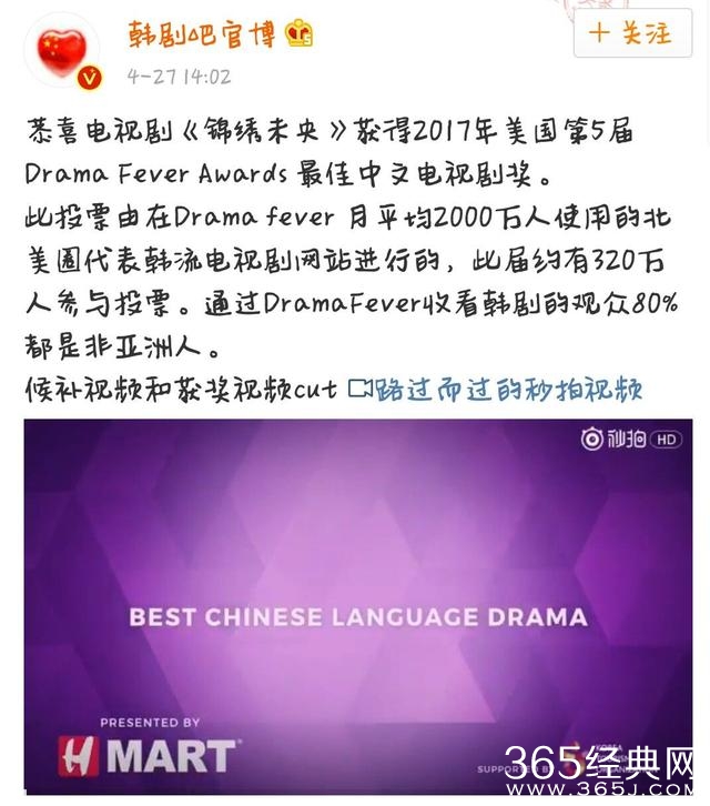 爱豆新闻讯 《锦绣未央》虽然已经播完那么久了,但是留给我们的惊喜却不断,昨天前方又传来捷报,电视剧《锦绣未央》获得2017年美国第5届 Drama Fever Awards 最佳中文电视剧奖。