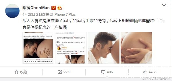 面对越来越多的流言angelbaby显然不可能置之不理啊,这不,就在昨晚,著名摄影师陈漫出面为baby黄晓明夫妇作证了,他声称因为拍摄孕照推迟了baby生小孩的时间,一拍完baby就立刻进产房了。