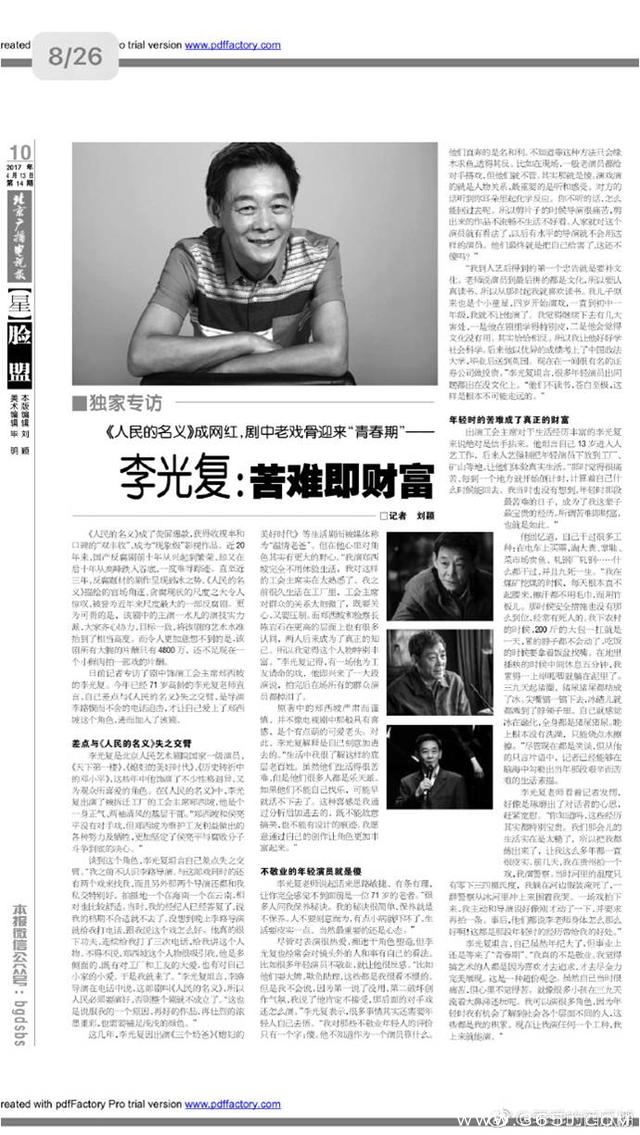 在演艺圈,李光复名副其实是位老屌丝。很多观众在《人民的名义》郑西坡一角之前,很少留意李光复。