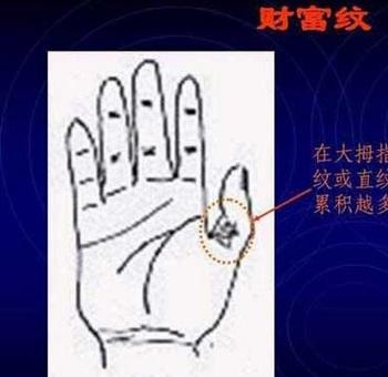 在大拇指的第二关节位置,有着横纹或者是指纹,纹路越多代表着积攒的财富越多,也说明着将来会越来越富裕。这一类型的人都是靠勤俭致富。
