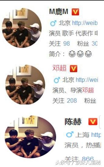 甚至鹿晗,陈赫,邓超三人的微博头像都是三人的合照呢,看来三人关系不浅呐?