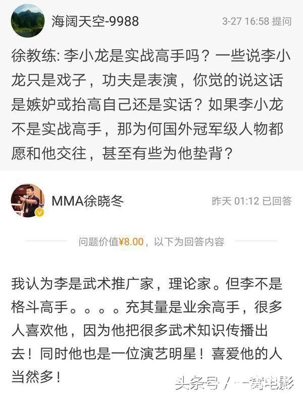 这几天徐晓东打败太极大师的新闻热火朝天,有人扒出他对李小龙的评价。
