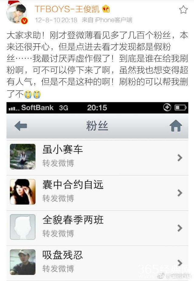 12岁到14岁微博一直在强调讨厌弄虚作假拒绝僵尸粉并写到微博简介;