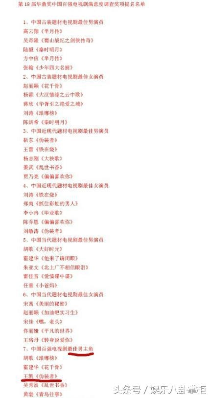 这个奖项在16年还引起一个非常大的争议,在《伪装者》里的男配王凯居然被推选为最佳男主和《琅琊榜》里的胡歌同台竞争,而作为《伪装者》里的男主胡歌却没入选,引得粉丝们纷纷讨伐华鼎奖组委会。
