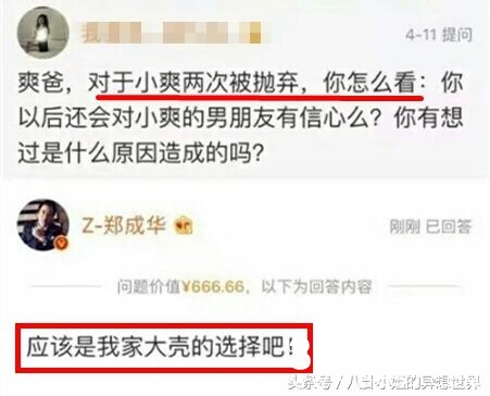 原来是郑爽爸爸在微博问答中翻了牌子,回答了关于“胡彦斌到底是不是你女婿?”这个问题。爽爸讲:“已经是过去式!”所以,这是承认了斌斌曾是郑爽男友的事实咯?
