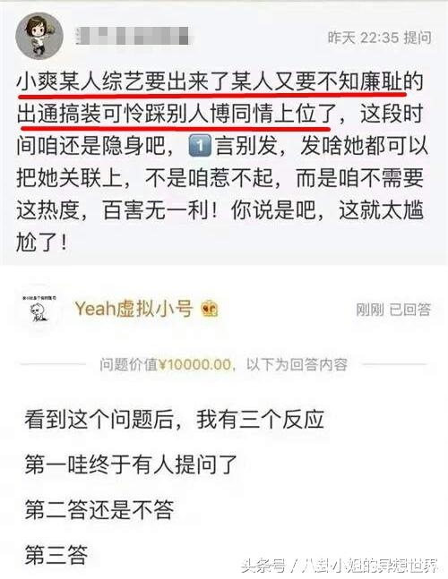 郑爽还在微博上翻牌了疑似影射娜扎上『花儿与少年』的提问,你们来感受一下这个问题里的形容词——不知廉耻、装可怜、博同情……
