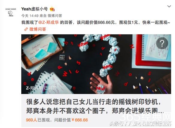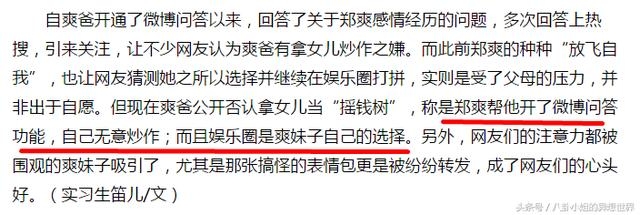 爽爸这时候说了,微博问答是郑爽帮忙开通的,自己无意炒作。好的,都是郑爽的锅,这是亲爹啊……
